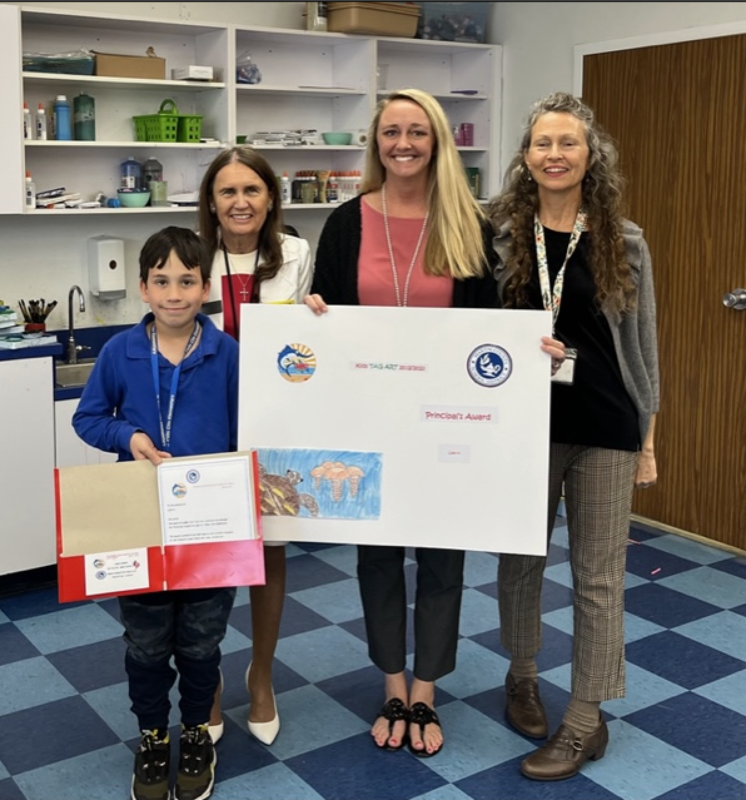 Palm City Elementary: Liam Hooten (Principal’s Award), Tax Collector Ruth Pietruszewski, Assistant Principal Elizabeth Atkinson, Art Teacher Martha Saum