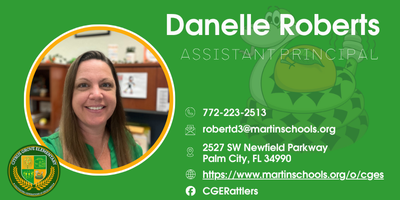 Mrs. Danelle Roberts has been a part of the Martin County School District for over 20 years, serving as a Prevention/Intervention Program Specialist, Math Instructional Coach, Data Liaison, and teacher at J.D. Parker Elementary School before becoming our Assistant Principal in 2023.