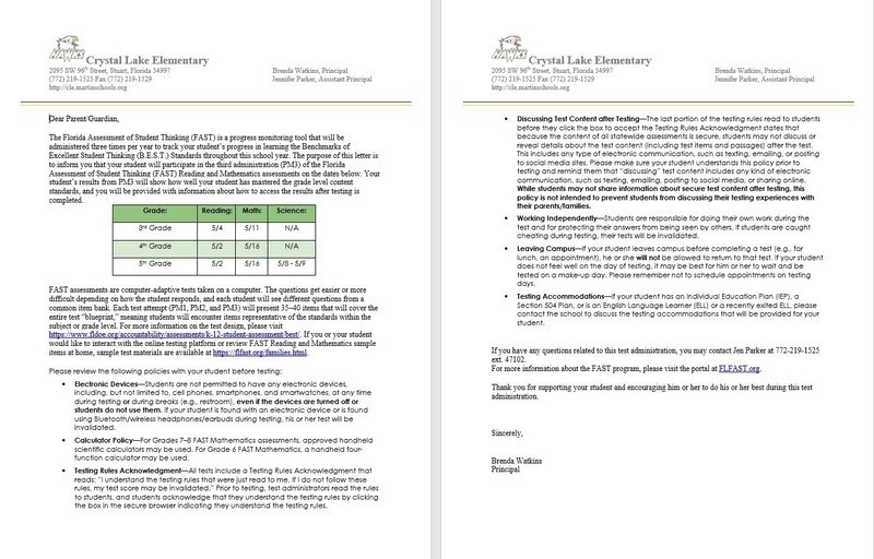 FAST PM 3 Parent Letter English