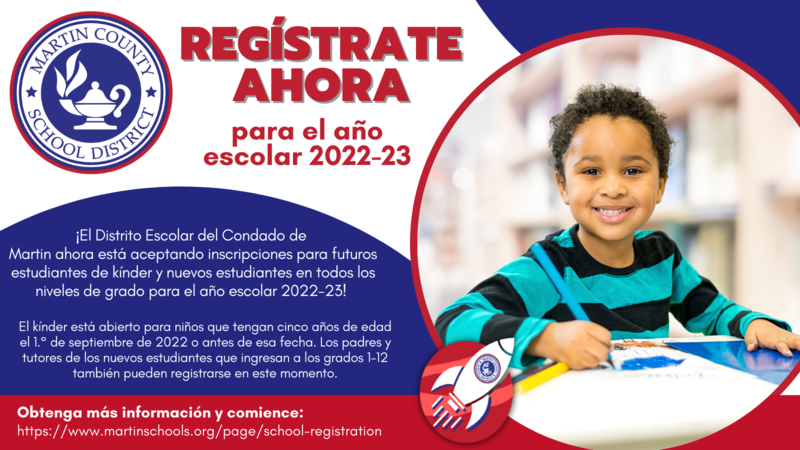 The Martin County School District is now accepting registrations for incoming kindergarten students and new students across all grade levels for the 2022-2023 school year.