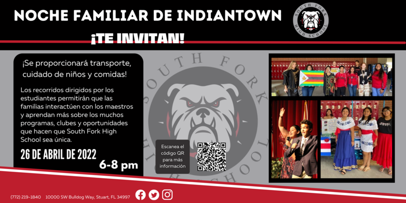South Fork High School proudly invites families residing in the Village of Indiantown to attend its Family Night event from 6- 8 p.m. on Tuesday, April 26, 2022.